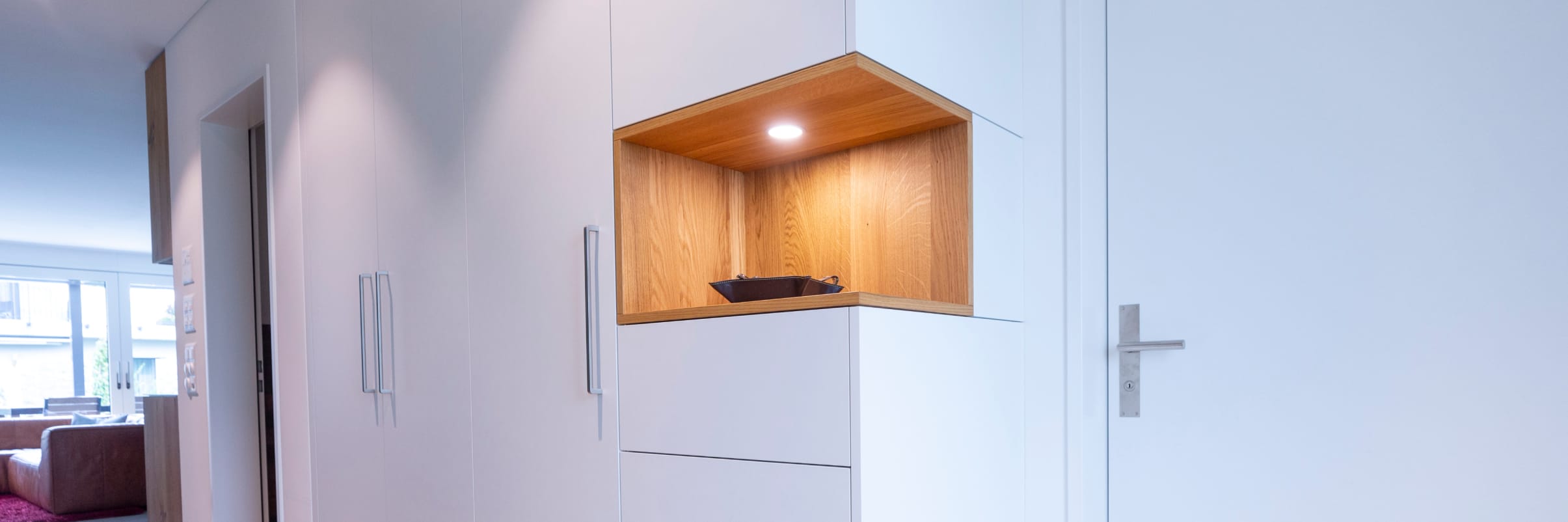 Unsere Schränke bieten die perfekte Kombination aus Funktionalität und ästhetischem Design. Ob für den Eingangsbereich, das Schlafzimmer oder das Wohnzimmer – wir gestalten individuelle Lösungen in verschiedenen Materialien und Farben. Lassen Sie sich inspirieren und finden Sie Ihren idealen Schrank für Ihre Bedürfnisse.